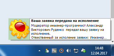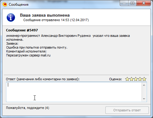 Клиентский модуль может принимать и обрабатывать информационные сообщения с сервера, в частности информацию о изменении статуса поданных заявок.