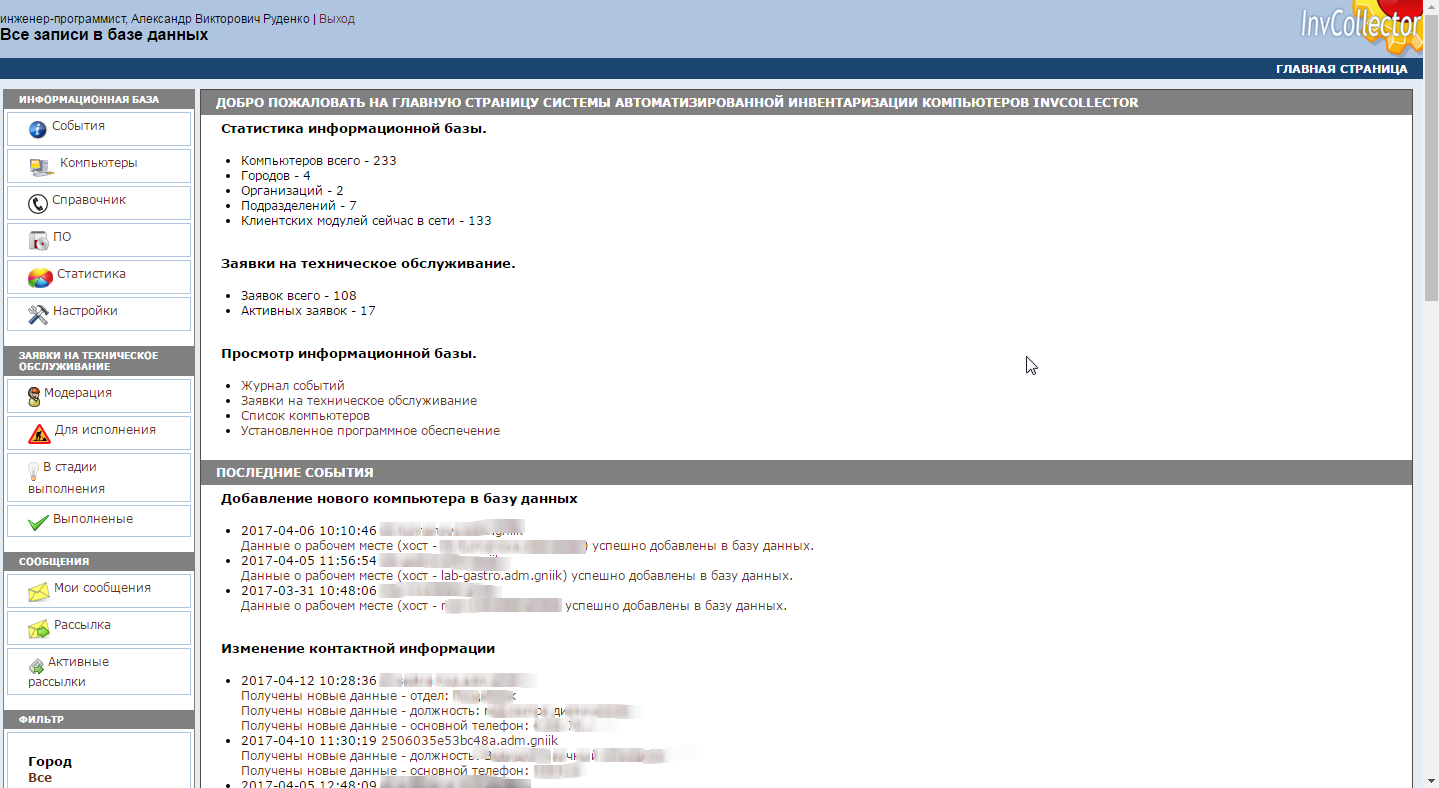 Журнал событий позволяет просмотреть в динамике изменения произошедшие с рабочими станциями.