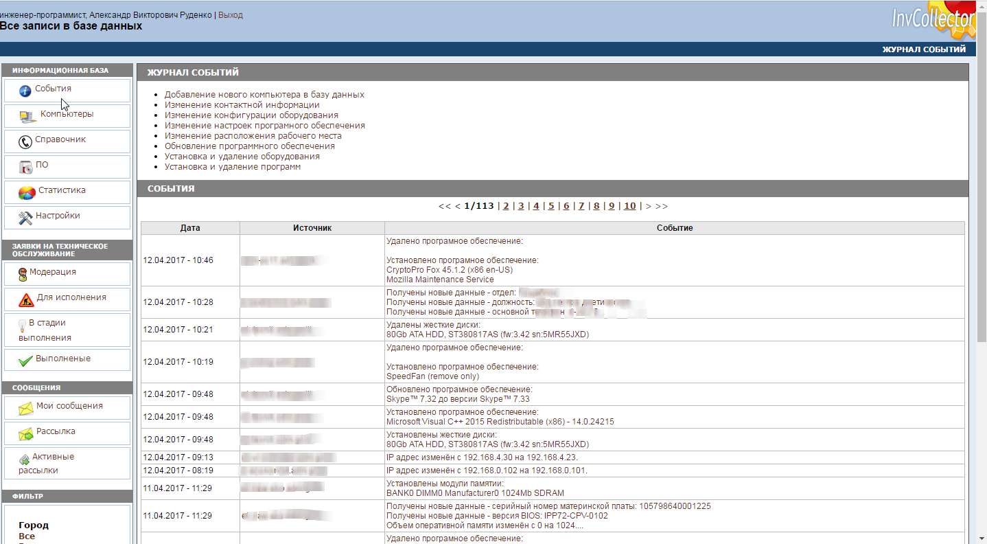 Журнал событий позволяет просмотреть в динамике изменения произошедшие с рабочими станциями.