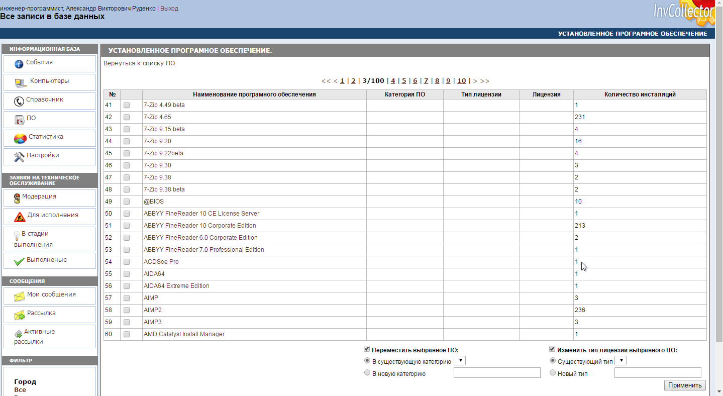 - инвентарного учета компьютеров и программного обеспечения;